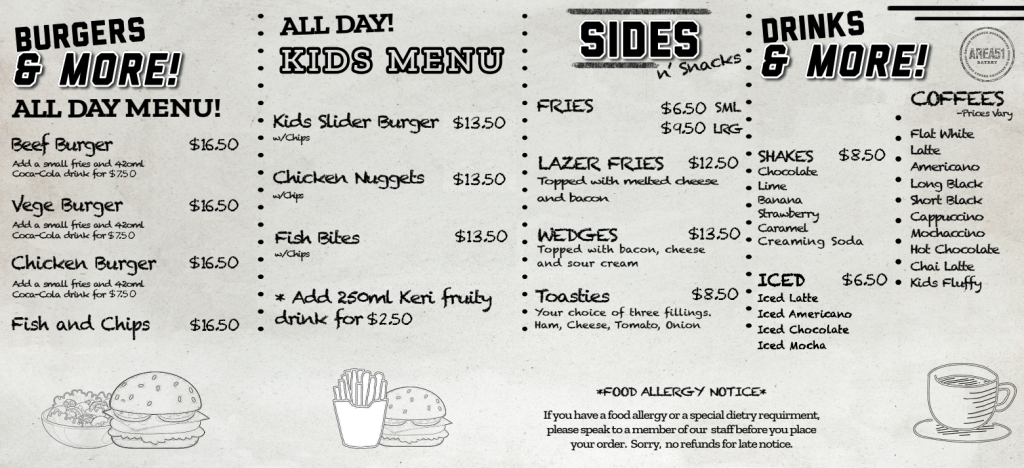 Get away from it all and chill on one of our promenade decks watching all the fun unfold, as you sample our Area 51 menu.