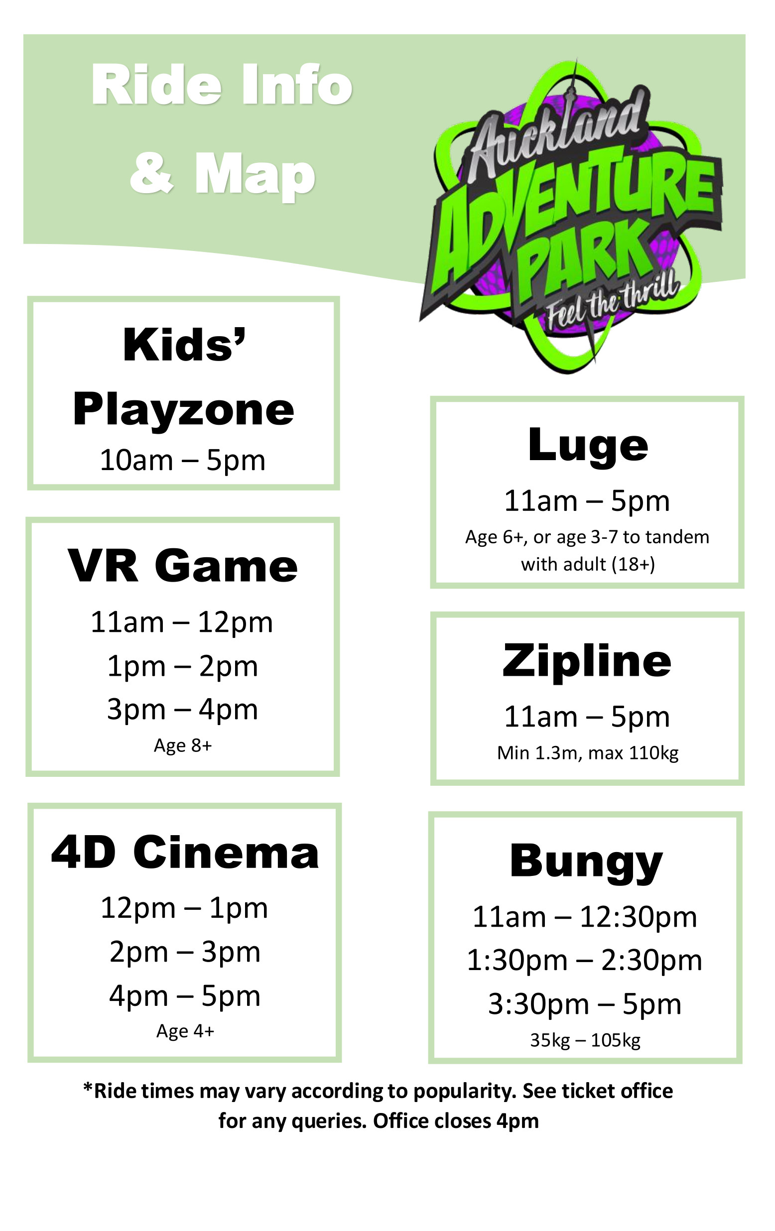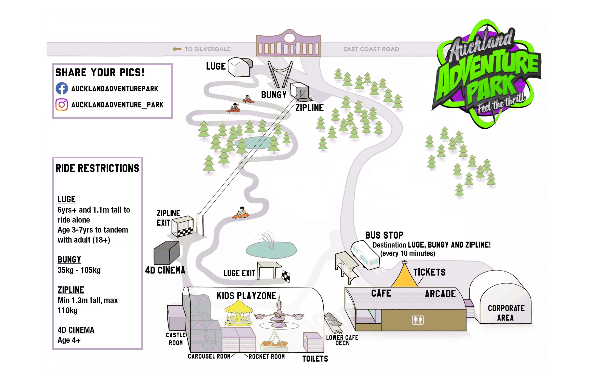 TICKETS 2104 East Coast Road, Silverdale +09 4265555 Wed-Fri: 10am-4pm. Sat-Sun: 10am-5pm (Kids Playzone open 10am, other rides start at 11am). Closed Mon-Tue. Click for more info Search Follow us HOME INFO RIDES KIDS PLAYZONE DUAL ZIPLINE SHOOTING STAR DOWNHILL LUGE 4D CINEMA VR EXPERIENCE HOME INFO RIDES KIDS PLAYZONE DUAL ZIPLINE SHOOTING STAR DOWNHILL LUGE 4D CINEMA VR EXPERIENCE AREA 51 CAFE BOOKINGS TICKETS & GIFTS BIRTHDAY PARTIES GROUP BOOKING GIFT CARDS CONTACT AREA 51 CAFE BOOKINGS TICKETS & GIFTS BIRTHDAY PARTIES GROUP BOOKING GIFT CARDS CONTACT Search Book Tickets BOOKING TICKETS & GIFTS BIRTHDAY PARTIES GROUP BOOKING GIFT CARDS INFO AREA 51 CAFE RIDES KIDS PLAYZONE SHOOTING STAR DOWNHILL LUGE 4D CINEMA DUAL ZIPLINE VR EXPERIENCE CONTACT BOOK NOW TICKETS InformationClick here for the Ride TimetableClick here for the Park Map
